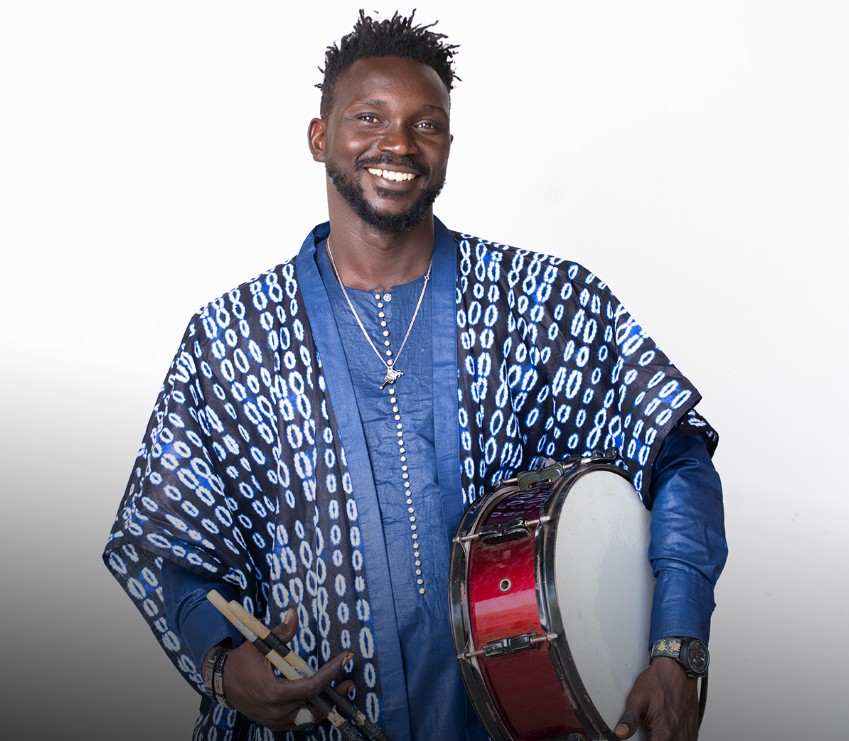 Born and raised in Ziguinchor, Casamance, Matar began his musical life as a traditional percussionist, performing at baptisms, weddings, naming ceremonies, and community gatherings, spaces where rhythm is not just music but a living cultural language. His deep grounding in Sabar, Serouba, Bougarabou, and other traditions shaped his instinctive understanding of pulse, feel, and communication long before he ever sat behind a drum kit.
